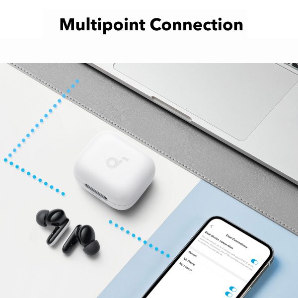 האוזניות כוללות חיבור Bluetooth 5.4 יציב, טכנולוגיית Adaptive ANC להפחתת רעשים עד 42dB, ותמיכה באפליקציית Soundcore להתאמת חוויית השמע. זמן הסוללה מאפשר שימוש ממושך לאורך היום, כולל טעינה מהירה.