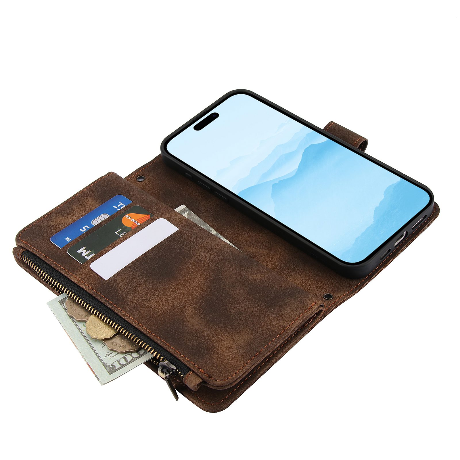 כיסוי ארנק לאייפון 17 בצבע חום (Brown) עם מקום לכרטיסים, כסף ושטרות – Wallet Phone Case mium