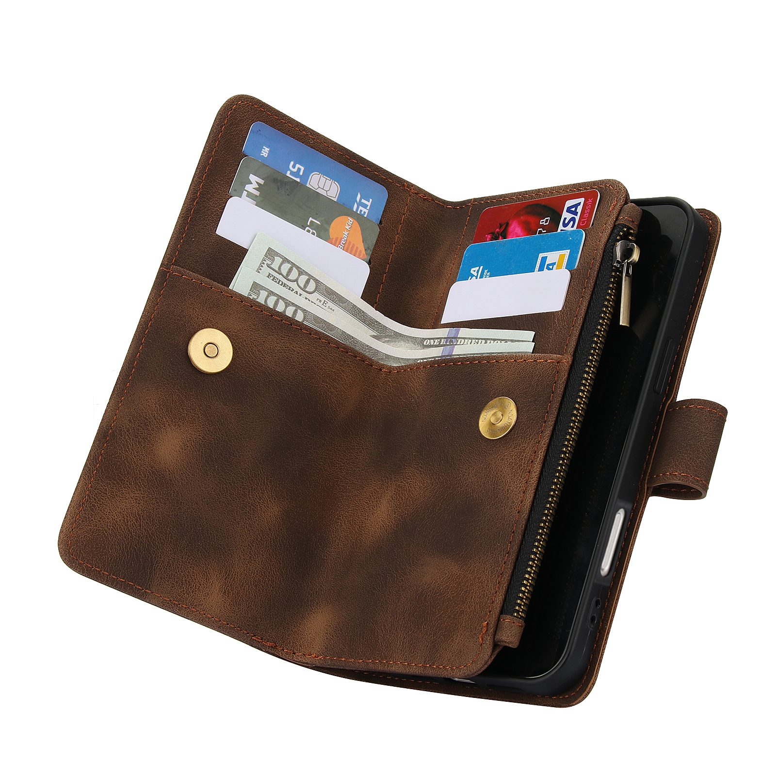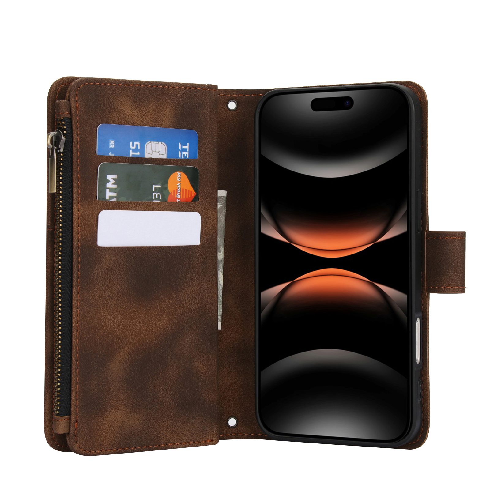 כיסוי ארנק לאייפון 17 פרו בצבע חום (Brown) עם מקום לכרטיסים, כסף ושטרות – Wallet Phone Case