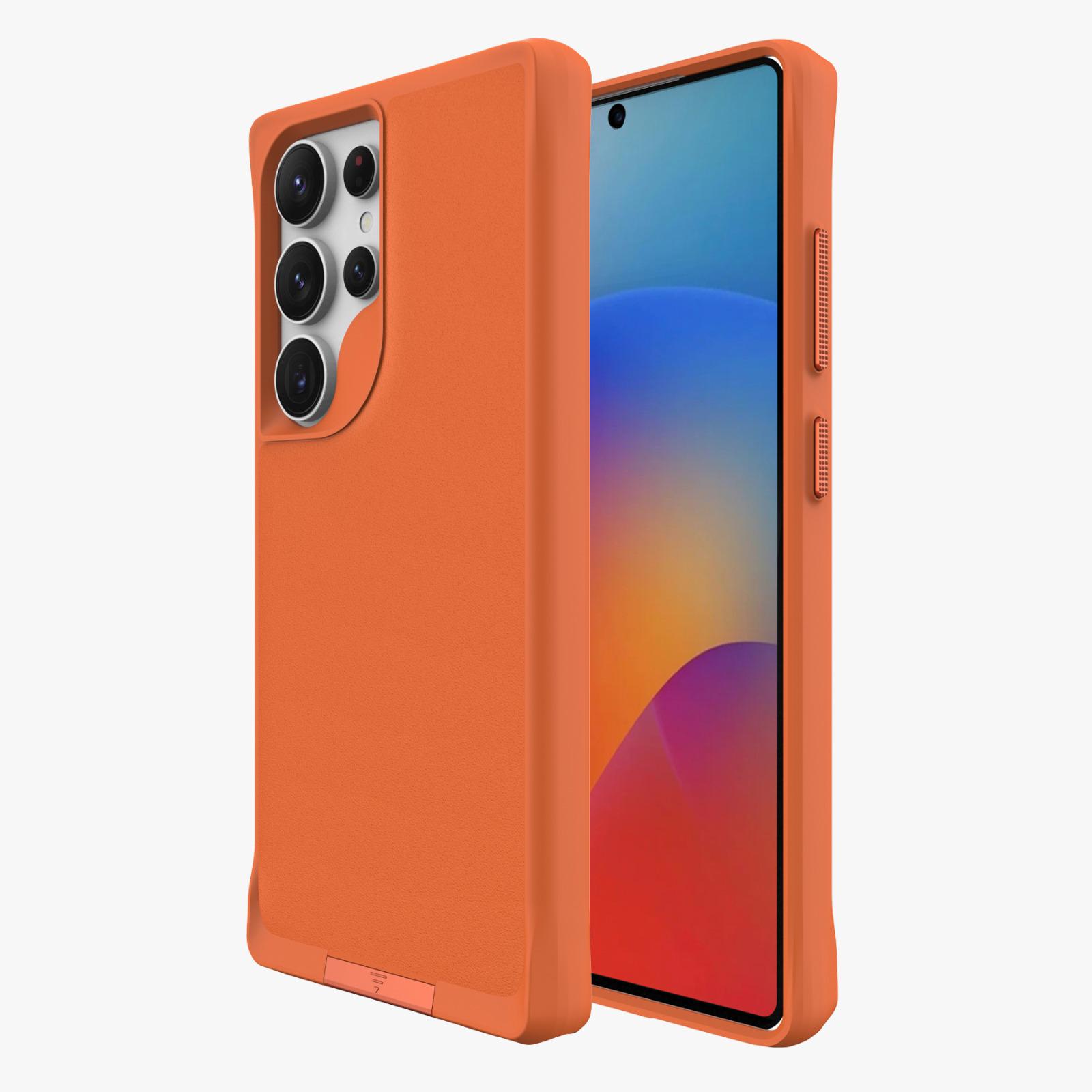 כיסוי מקושח איכותי במיוחד תומך Magsafe ורגלית עבור Samsung S25 Ultra בצבע כתום