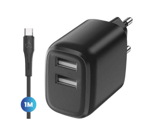 מטען קיר Essentials Dual 12W Wall Charger + Type-C Cable
