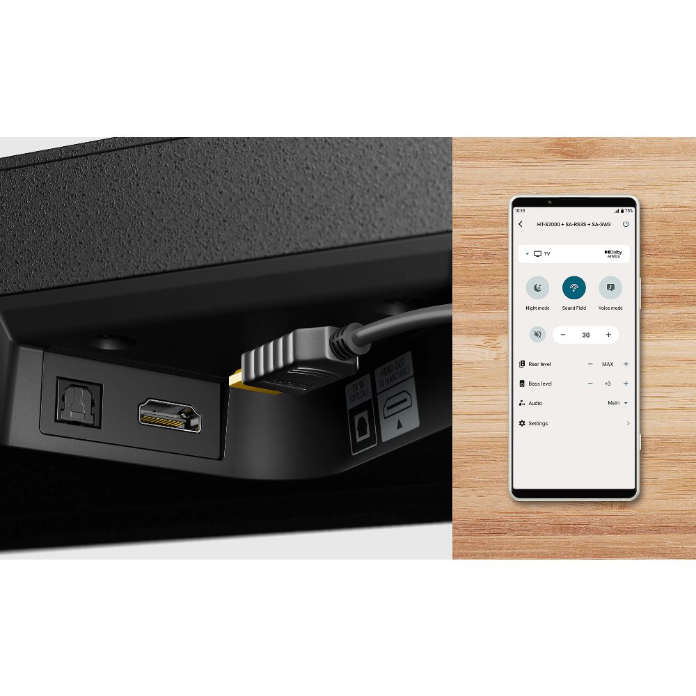 חיבור HDMI eARC מספק אודיו באיכות גבוהה ישירות מהטלוויזיה. בשילוב עם BRAVIA XR TV מקבלים Acoustic Center Sync — הטלוויזיה והסאונדבר פועלים יחד כרמקול מרכזי. ניתן להרחיב בעתיד עם סאבוופר אלחוטי אופציונלי (SA-SW3/SW5) ורמקולי אחור (SA-RS3S) ל-5.1ch.