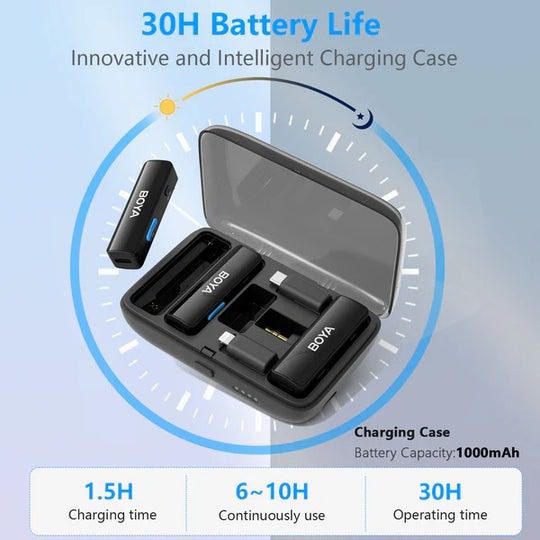 סט מיקרופון אלחוטי כפול עם קייס טעינה מתאים ל – Boyalink Type C/3.5/Lightning שנה אחריות