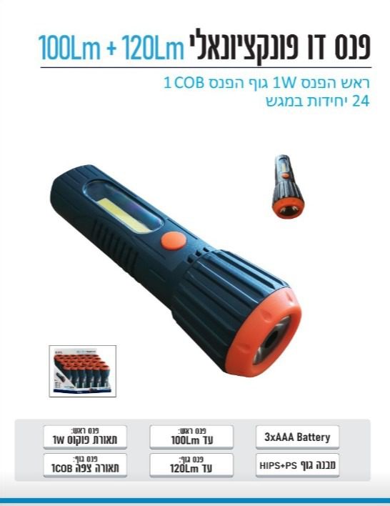פנס יד דו כיווני + סוללות מבית OMEGA