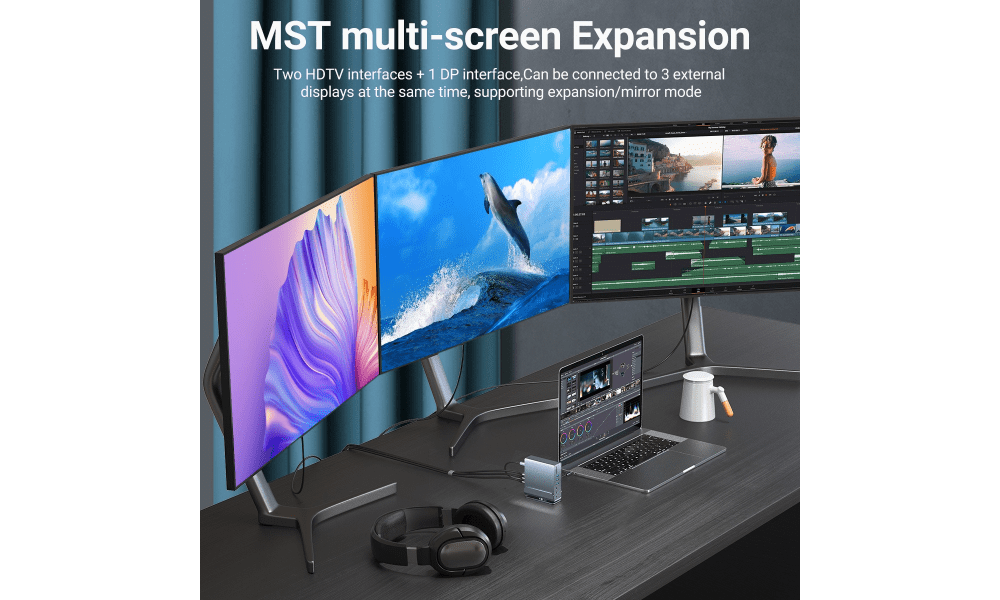 תחנת עגינה מקצועית 16 ב־1 עם חיבור Type-C