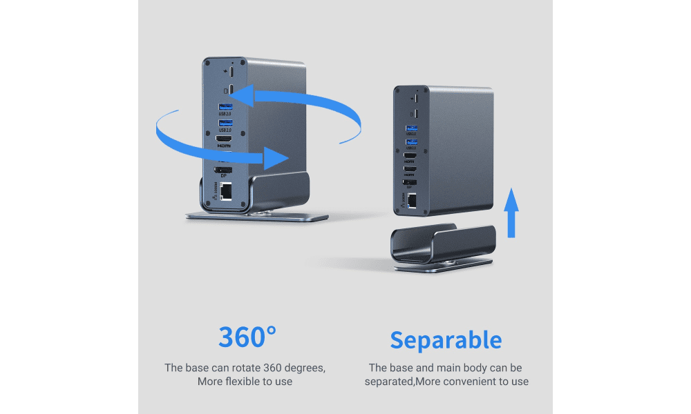 תחנת עגינה חכמה ורבת-חיבורים שתהפוך כל מחשב נייד לעמדת עבודה מקצועית. כוללת 16 חיבורים שונים להעברת נתונים מהירה, חיבור מסכים באיכות 4K, טעינה חזקה דרך USB-C, רשת קווית יציבה, קורא כרטיסים מובנה ועוד – הכל בעיצוב אלגנטי עם בסיס מגנטי נשלף.